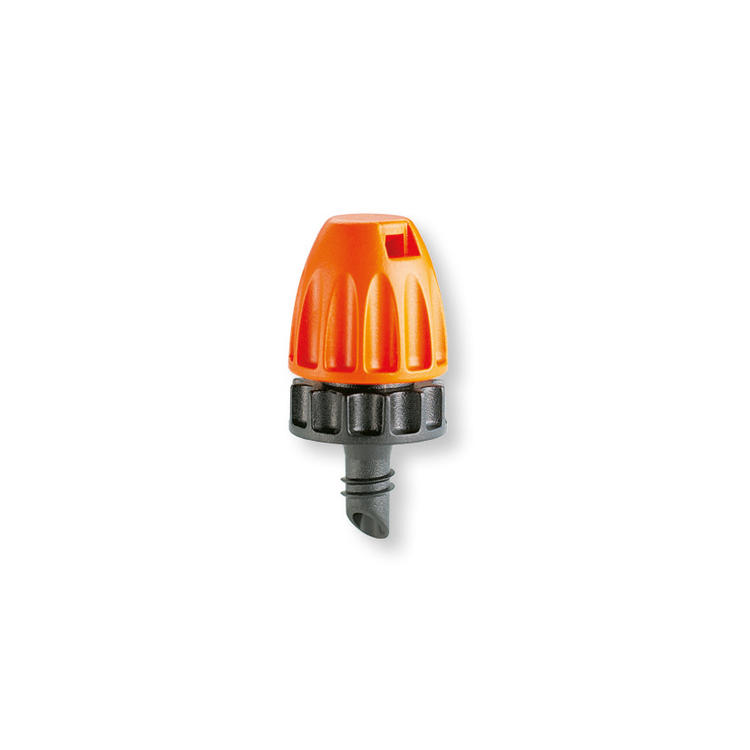 Mikro-Sprühdüse 90° für die Installation in das 1/2” PE-Verlegerohr (13 - 16 mm), auf ein Verteilerrohr 1/4“, auf eine Verlängerung (CL912600000) oder ein Stativ (CL912650000). Die maximal beregnete Fläche beträgt 8 m². Blister mit 10 Stück. • Sprühdüse zur sanften...