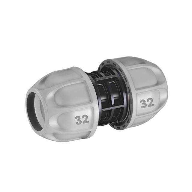 Klemmverbinder für PE-Rohre, zur schnellen und sicheren Verschraubung ohne Werkzeug. • 2-Wege-Klemmverbinder 1" (32 mm), zur schnellen und sicheren Verschraubung ohne Werkzeuge