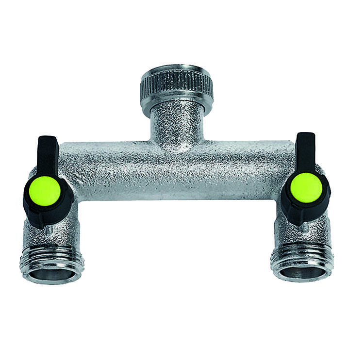 • mit 3/4“ Innengewinde zum Anschluss an den Wasserhahn und 2 paralellen Wasseranschlüssen mit 3/4“ Außengewinde für die Schlauchverbindung • beide Anschlüsse sind individuell regulierbar sowie vollständig absperrbar