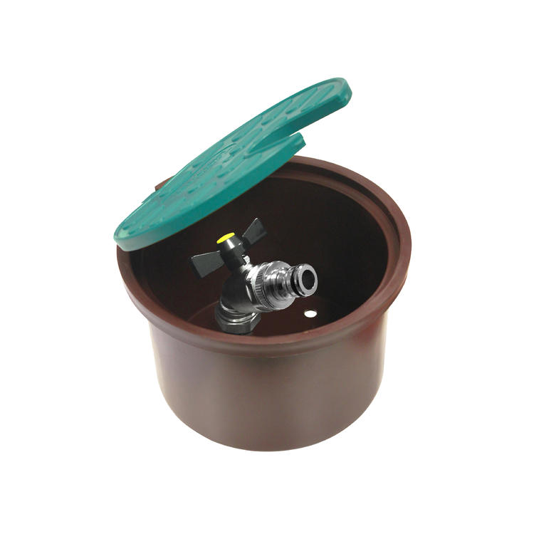 • Ventilbox mit drehbarer Schlauchverbindung 180° als Wasserentnahmestelle zum Einbau in das Erdreich • grüner klapp- und schließbarer Deckel mit Schlauchöffnung • Wasseranschluss mit 3/4" Innengewinde an der Unterseite und Schnellkupplungssystem mit Absperrhahn an der Entnahmestelle,...
