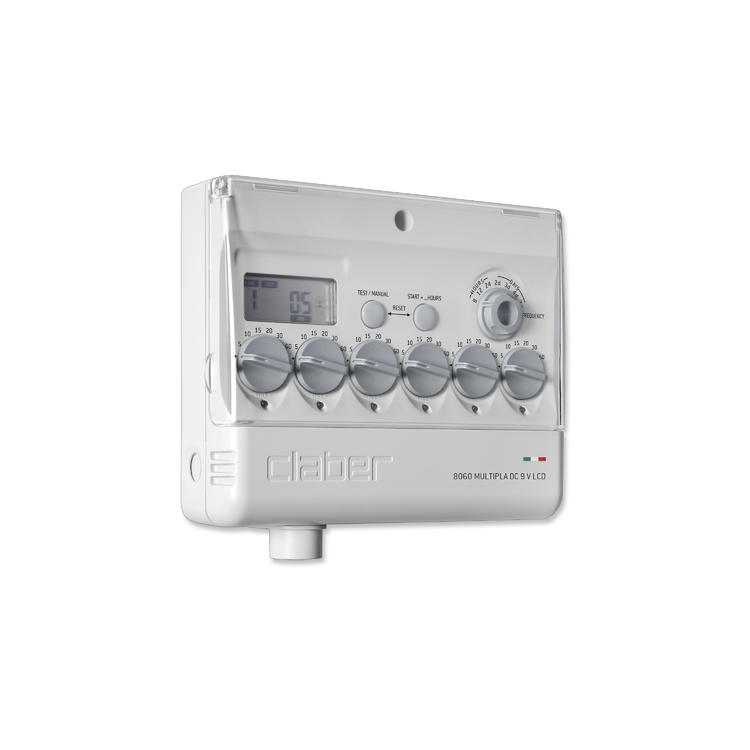 Elektronischer Bewässerungscomputer mit 6 Leitungen und einfacher Programmierung: einfach die gewünschte Bewässerungsdauer mithilfe der 6 Drehgriffe einstellen: 5 - 10 - 15 - 20 - 30 - 60 Minuten. Befehl „Frequency“ für die Auswahl der Wiederholung des Bewässerungsprogramms in festgelegten...