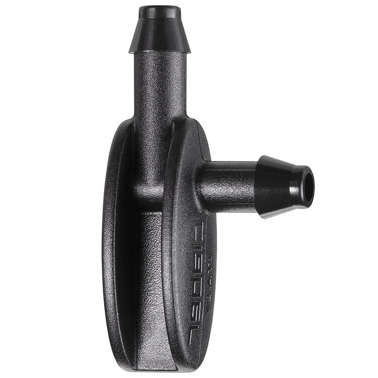 2-Wege-Winkelerbinder für Tropfrohre 1/4“ (4 - 6 mm) zur Verbindung von zwei Tropfrohren. Blister mit 10 Stück je Verkaufseinheit • 2-Wege-Winkelverbinder für Tropfrohre 1/4“ (4 - 6 mm) • Blister mit 10 Stück